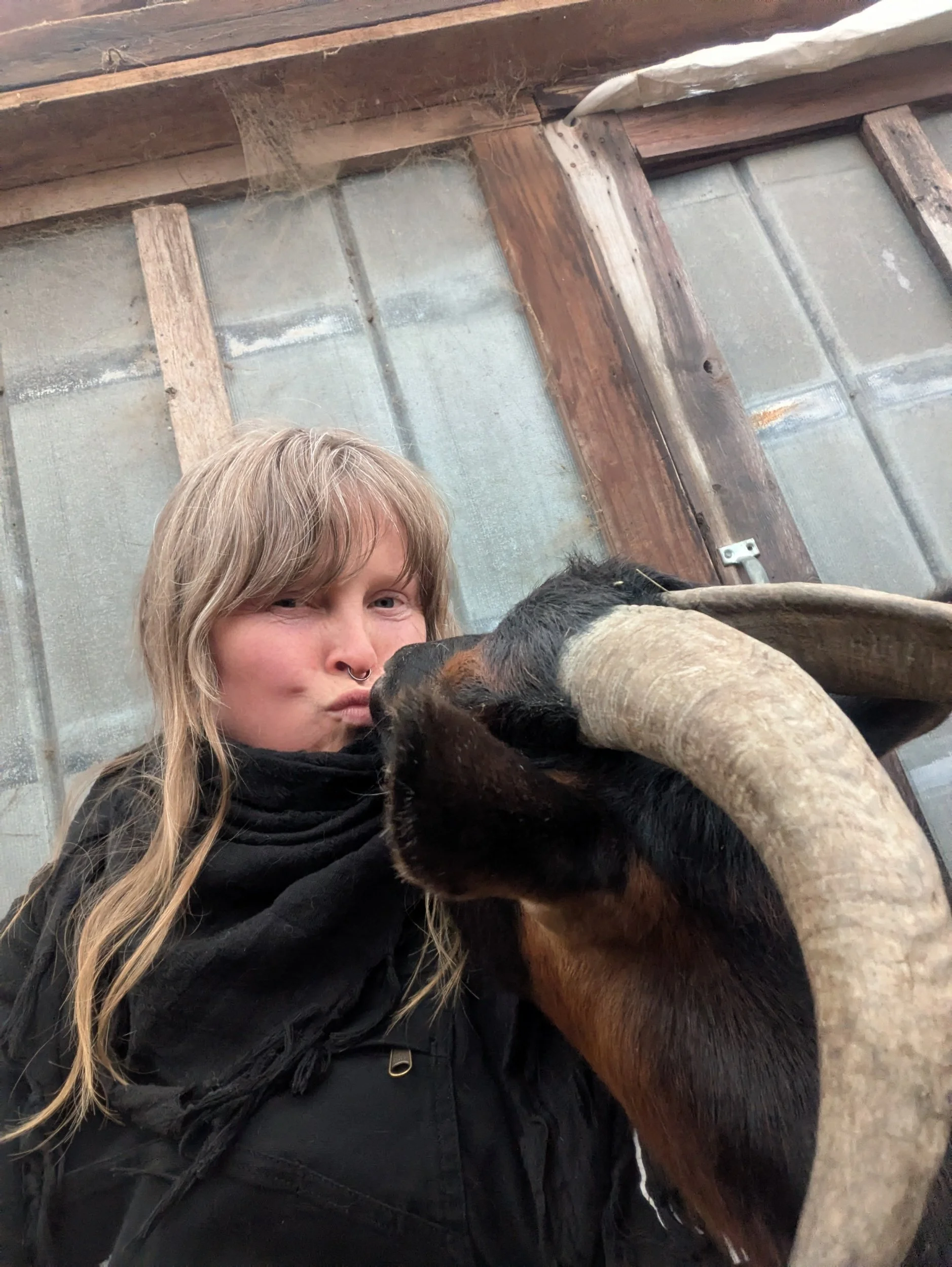 Julbukk aks for head scratches. It’s not always super safe to scratch a goat between the horns on the back of their head. Sometimes your wrist could get wedged between the horns, and the goat could startle. Resulting in a wrist injury. But some of my goats specifically ask for scratches on their head. And I carefully oblige.